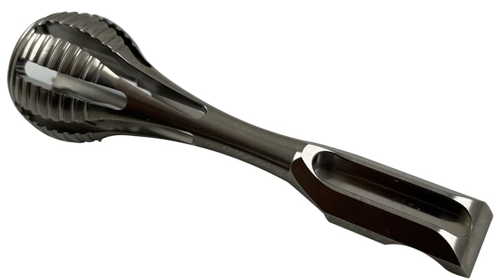 Perfect for shaving even more weight off the Tikka T3x Superlite! This skeletonized titanium Tikka T3 and T3x bolt handle is similar to the factory handle but completely skeletonized with a slightly larger knob diameter of 0.9" (22.86mm) and slightly longer overall length of 3.076" (78.15mm) end-to-end. This handle takes significantly longer for us to manufacture than anything else in our range. Available either straight or swept back, for both right and left handed rifles. Weighs 0.57oz (16.2g) - less than half of the factory steel handle at 1.45oz (41.2g) !